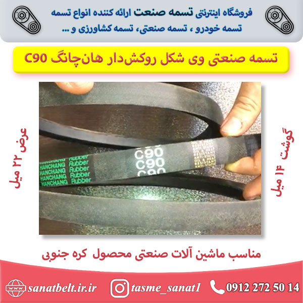 تسمه V شکل روکشدار هانچانگ عرض ۲۲ میل و گوشت ۱۴ میل سایز C90 مناسب ماشین آلات صنعتی و کشاورزی